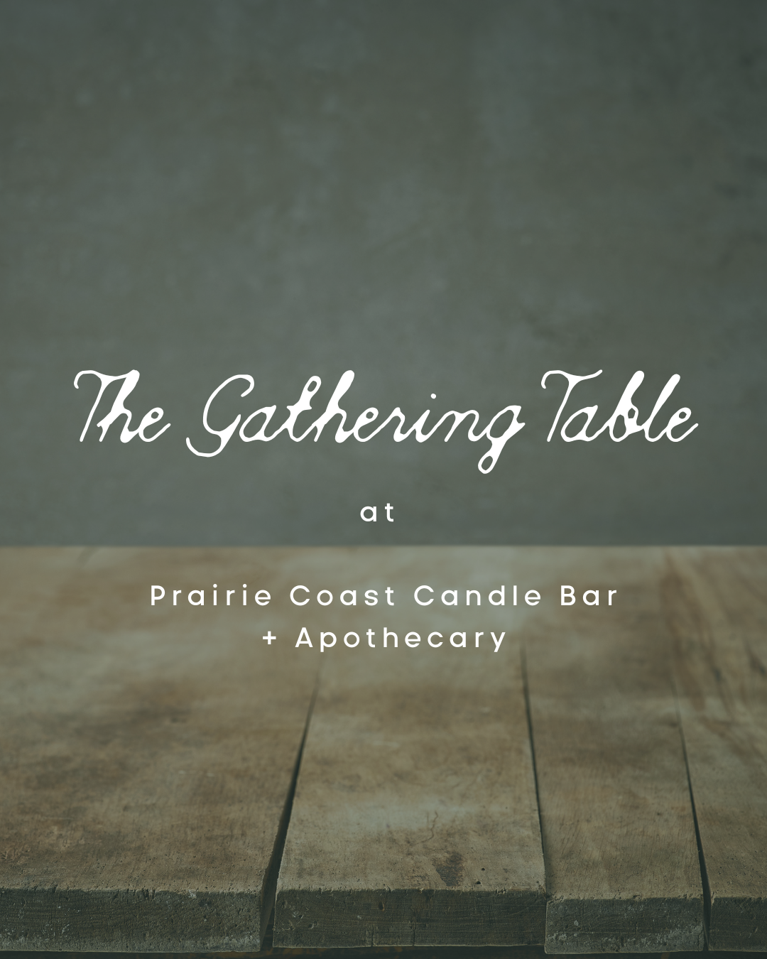 We’re excited to share that The Gathering Table at Prairie Coast Candle Bar + Apothecary will soon be available to rent for your own classes and creative experiences.